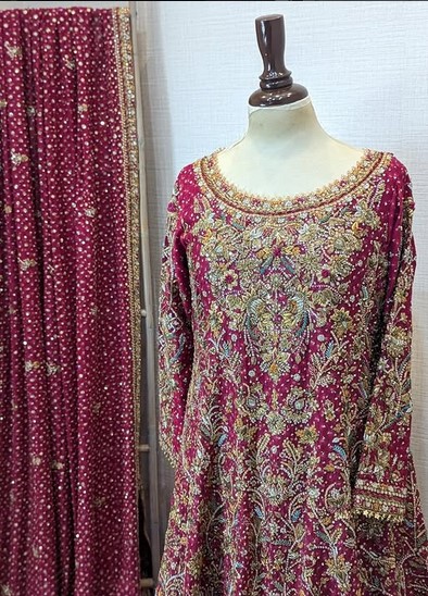 This outfit is not just attire; it is an experience of luxury, heritage, and individuality. Whether you’re planning your wedding, engagement, or reception, this magenta maxi lehenga is designed to make every bride feel like royalty.