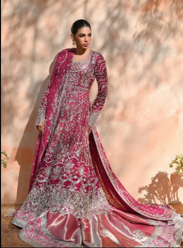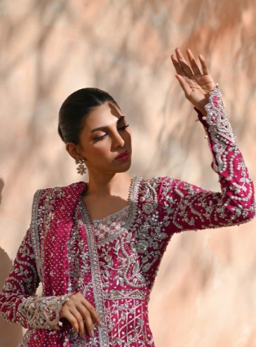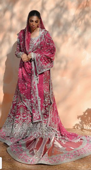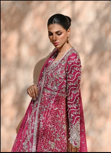Step into bridal royalty with this LUXE Pakistani Bridal Lehenga by KSHKIN, designed for brides who seek timeless elegance and couture craftsmanship. Featuring intricate hand embroidery, premium fabrics, and a regal deep pink tone, this bridal ensemble is a statement of tradition, luxury, and bespoke artistry. Custom-made for perfection, this bridal wear reflects unmatched detailing and royal grace.