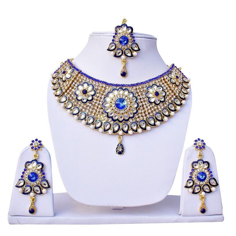 Going to party with same boring jewellery. Try this Blue Meenakari Kundan & CZ Stone Set. Buy it now online from kshkin.com.