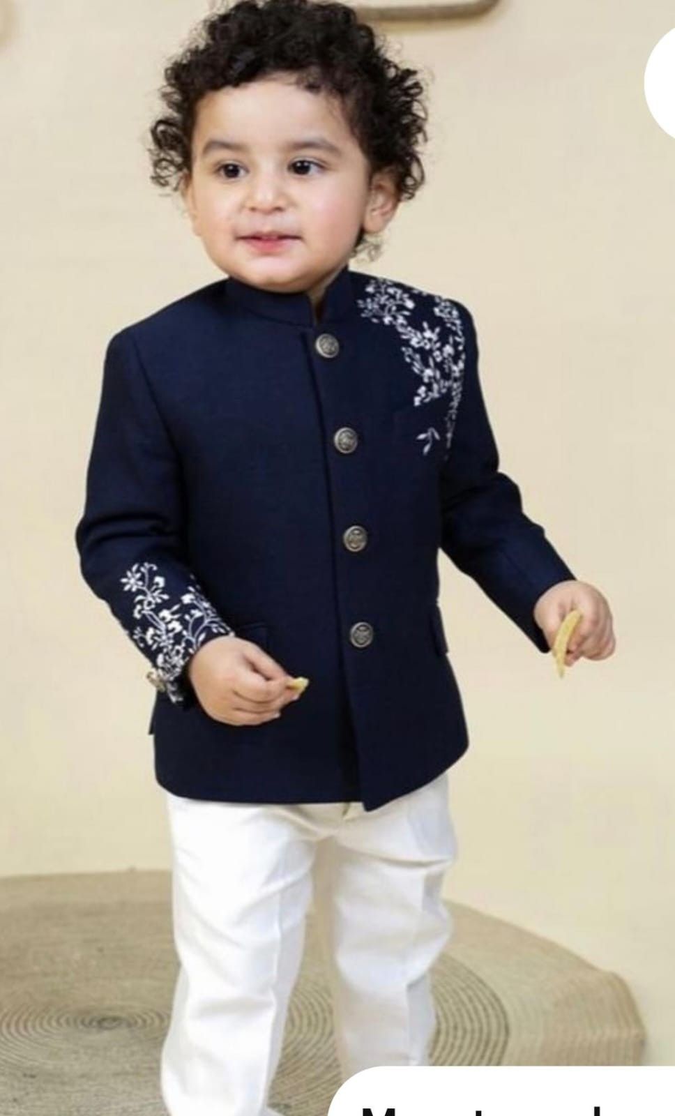 The structured Jodhpuri silhouette, paired with elegant buttons, creates a smart and polished appearance. Matched with crisp white trousers, this outfit is ideal for weddings, receptions, festive events, birthday parties, and cultural celebrations. Made from comfortable, premium-quality fabric, it allows easy movement while keeping your child stylish all day long.