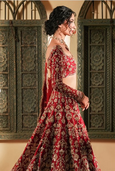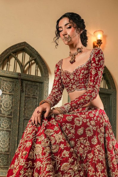Red Bridal Lehenga with Zardosi & Tilla Handwork | Custom Made Designer Wedding Lehenga