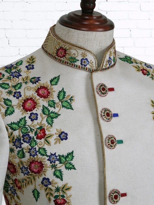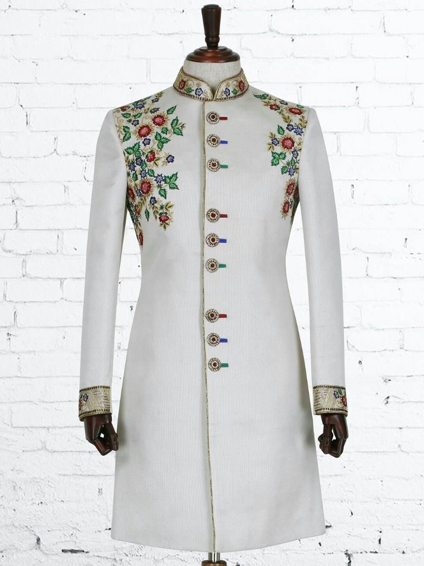 Men’s Ivory Sherwani Embroidered Wedding Indo Western Coat Groom Ethnic Outfit – DN-3007