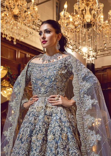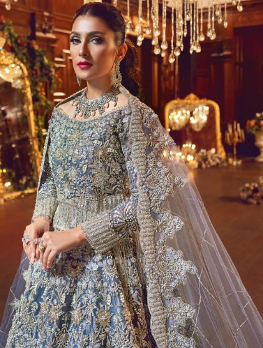 silver bridal lehenga, grey bridal lehenga 2026, luxury wedding lehenga, pastel bridal lehenga, reception lehenga for bride, walima bridal outfit