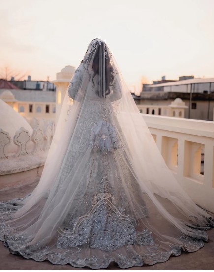 The dupatta is light, soft, and elegant. It adds a dreamy touch and completes the bridal look in a very balanced way.